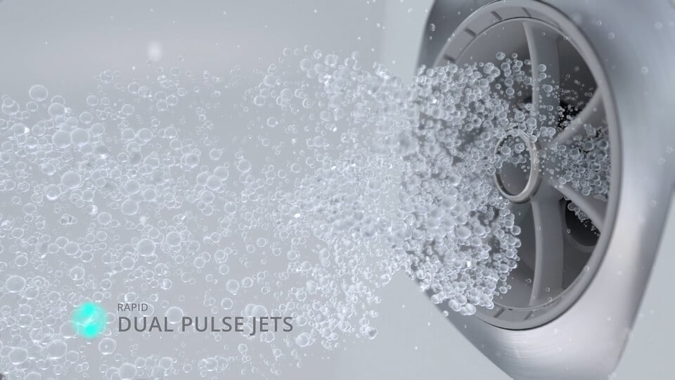 Vidutinio intensyvumo masažas su dviem greitai pulsuojančiais, besisukančiais purkštukais, suteikiantis gilesnį atsipalaidavimą ir efektyvų streso mažinimą.