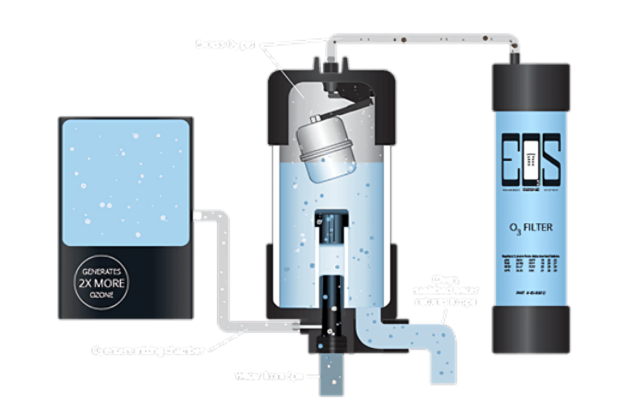 EOS™ – pažangi vandens valymo sistema, kuri gali būti iki 2 kartų efektyvesnė pašalinant nešvarumus oksidacijos būdu, be neigiamo perteklinių ozono dujų poveikio. Ši unikali 3 dalių sistema generuoja iki 2 kartų daugiau ozono nei standartinės, geriau dezinfekuoja masažinės vonios vandenį ir beveik visiškai neutralizuoja likutines O3 dujas.