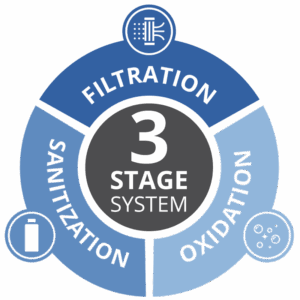 Mūsų patirtimi, geriausi rezultatai pasiekiami tada, kai sistema apjungia tris esminius komponentus: filtravimo sistemą, mažai chemijos naudojančią pagrindinę dezinfekavimo sistemą ir veiksmingą antrinę oksidacijos sistemą. Šios trys pakopos kartu užtikrina, kad masažinės vonios vanduo išliktų švarus, be teršalų ir saugus jums bei jūsų artimiesiems, tuo pačiu reikalaujant kuo mažiau priežiūros.