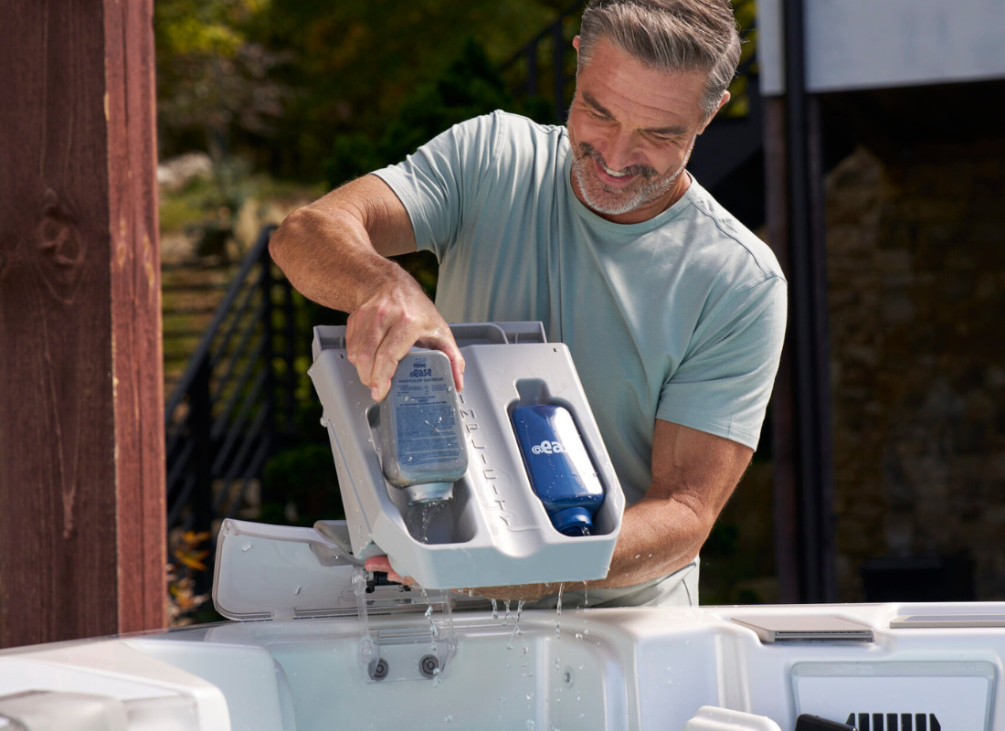 Naudojant FROG® @ease® savo masažinėje vonioje, vanduo išlieka švarus ir saugus, o chloro sunaudojama iki 75 % mažiau. Tai sumažina šoko (shock) procedūrų poreikį iki vieno karto per mėnesį bei padeda apsaugoti maudymosi aprangą ir jautrią odą.